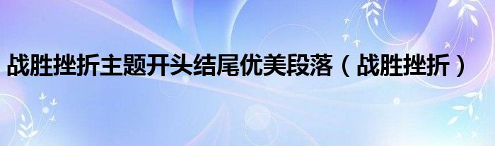 关于战胜挫折主题开头结尾优美段落,战胜挫折这个很多人还不知道,今天菲菲来为大家解答以上的问题,现在让我们一起来看看吧!