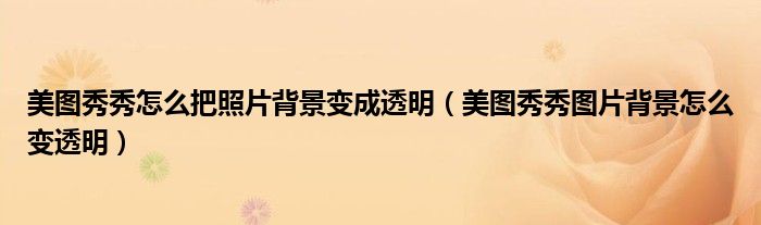 美图秀秀怎么把照片背景变成透明(美图秀秀图片背景怎么变透明)