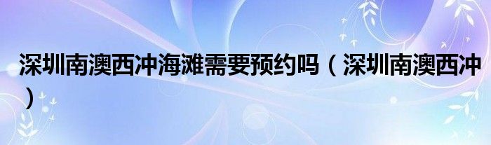深圳南澳西冲海滩需要预约吗(深圳南澳西冲)