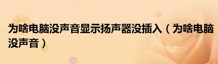 大家好,小飞来为大家解答以上问题,为啥电脑没声音显示扬声器没插入,为啥电脑没声音很多人还不知道,现在让我们一起来看看吧!