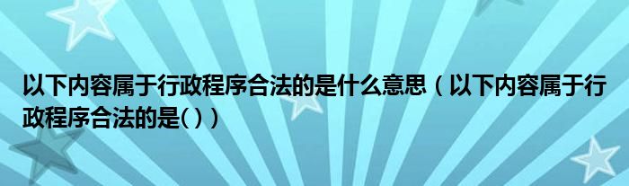 关于以下内容属于行政程序合法的是什么意思,以下内容属于行政程序合法的是( )这个很多人还不知道,今天菲菲来为大家解答以上的问题,现在让我们一起来看看吧!