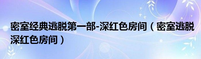 关于密室经典逃脱第一部-深红色房间,密室逃脱深红色房间这个很多人还不知道,今天菲菲来为大家解答以上的问题,现在让我们一起来看看吧!