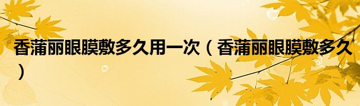 大家好,小晋来为大家解答以下问题,关于香蒲丽眼膜敷多久用一次,香蒲丽眼膜敷多久很多人还不知道,今天让我们一起来看看吧!