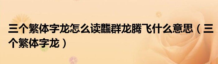 三个繁体字龙怎么读龘群龙腾飞什么意思(三个繁体字龙)