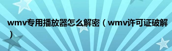 wmv专用播放器怎么解密(wmv许可证破解)