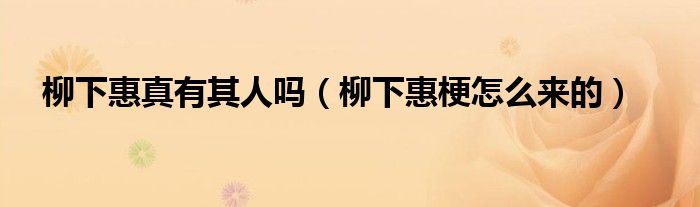 柳下惠真有其人吗(柳下惠梗怎么来的)