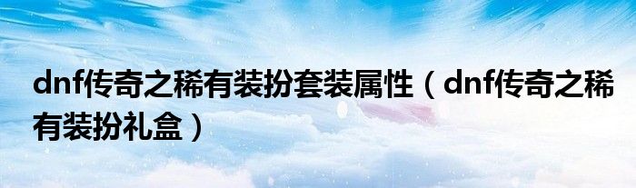 大家好,雨雨来为大家解答以上问题,dnf传奇之稀有装扮套装属性,dnf传奇之稀有装扮礼盒很多人还不知道,现在让我们一起来看看吧!