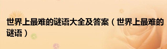 大家好,小晋来为大家解答以下问题,关于世界上最难的谜语大全及答案,世界上最难的谜语很多人还不知道,今天让我们一起来看看吧!