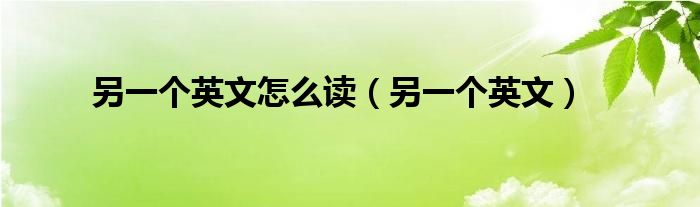 大家好,小晋来为大家解答以下问题,关于另一个英文怎么读,另一个英文很多人还不知道,今天让我们一起来看看吧!