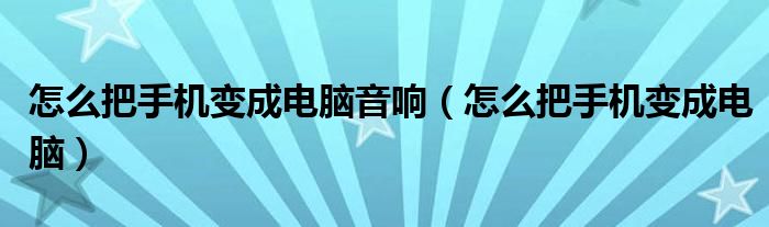 大家好,小晋来为大家解答以下问题,关于怎么把手机变成电脑音响,怎么把手机变成电脑很多人还不知道,今天让我们一起来看看吧!