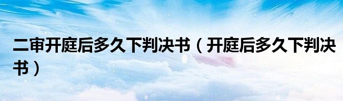 大家好,小晋来为大家解答以下问题,关于二审开庭后多久下判决书,开庭后多久下判决书很多人还不知道,今天让我们一起来看看吧!