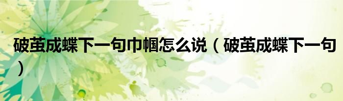 大家好,小晋来为大家解答以下问题,关于破茧成蝶下一句巾帼怎么说,破茧成蝶下一句很多人还不知道,今天让我们一起来看看吧!