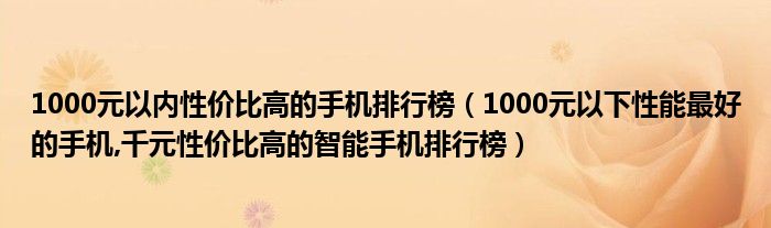 1000以内性能好的手机有哪些呢?今天我来跟大家说一说1000以内性能好的手机,像oppo的那些i系列的手机,他都在1000左右,还有的就是vivo那些手机也有1000左右的每一个品牌,他都有1000左右的,像那些1000左右的手机,他性能好的,其实是没有的,它的处理器是比较低,还有的就是他用时间久了会比较卡顿,所以说1000左右是买不到太好的手机,如果说我们想买1000左右,买个好的性能的手机的话,我们可以选择二手的手机,二手的手机其实也是完全可以用的,非常的不错的,1000左右,买个二手的手机,能买到价值在2000多的手机,像2000多的都是旗舰机,所以的话,我们1000左右就可以买到,非常的便宜,但是手机也是非常的好用,用个一两年之后也不会去淘汰我现在用的手机就是二手的手机,也是1000块钱买的,是华为荣耀20像华为荣耀20的话,它的处理器是麒麟980的处理器,他的处理器是非常的高,是8 128的内存,后置摄像头是4800万,加上1600万,加上800万,加上200万广角四摄还支持nfc这个配置是非常的,可以了,1000块钱买到这样的手机,用个两三年,完全是没有问题的如果说你花1000块钱去买个新机的话,只能买到那些联发科的处理器,还有的就是像联发科那些低端的处理器,虽然说内存是大了一点,但是用时间久了,他会卡顿,要不然就买高通的处理器,要不然就买麒麟的处理器,不要买那些联发科的处理器,配置太低了,谢谢大家的观看,感谢你的关注,给我点赞,转发一下,非常感谢大家!。