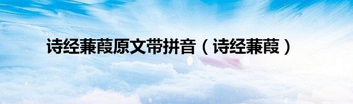 大家好,小晋来为大家解答以下问题,关于诗经蒹葭原文带拼音,诗经蒹葭很多人还不知道,今天让我们一起来看看吧!