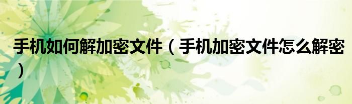 大家好,小晋来为大家解答以下问题,关于手机如何解加密文件,手机加密文件怎么解密很多人还不知道,今天让我们一起来看看吧!