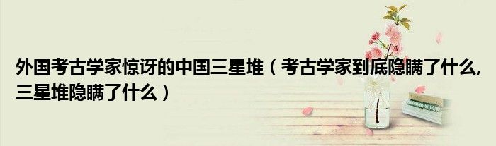 大家好,小常来为大家解答以上问题。外国考古学家惊讶的中国三星堆,考古学家到底隐瞒了什么,三星堆隐瞒了什么很多人还不知道,现在让我们一起来看看吧!