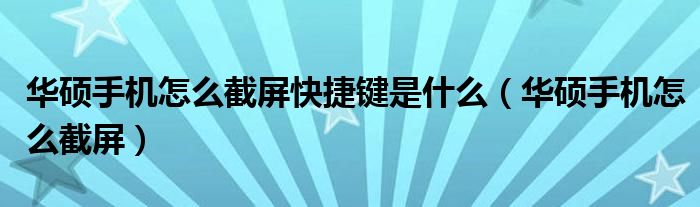 华硕手机怎么截屏快捷键是什么(华硕手机怎么截屏)