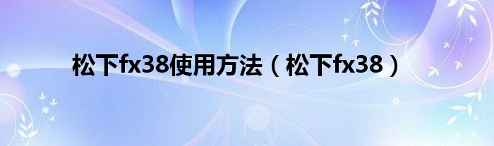 松下fx38使用方法(松下fx38)