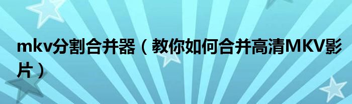 大家好,今天小悦来为大家解答以上问题。mkv分割合并器,教你如何合并高清MKV影片很多人还不知道,现在让我们一起来看看吧!
