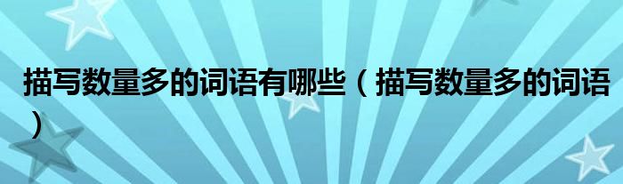 大家好,小晋来为大家解答以下问题,关于描写数量多的词语有哪些,描写数量多的词语很多人还不知道,今天让我们一起来看看吧!