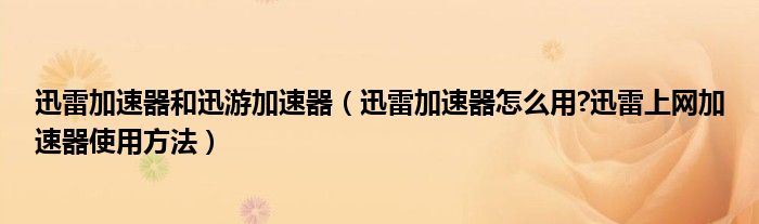 迅雷加速器和迅游加速器(迅雷加速器怎么用?迅雷上网加速器使用方法)