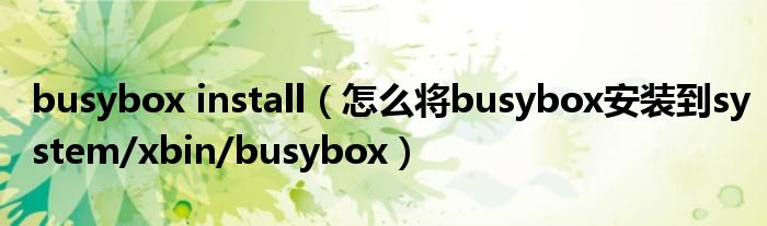 大家好,今天小悦来为大家解答以上问题。busybox install,怎么将busybox安装到system/xbin/busybox很多人还不知道,现在让我们一起来看看吧!
