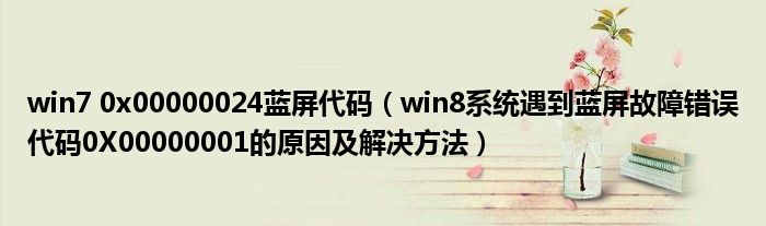 大家好,今天小悦来为大家解答以上问题。win7 0x00000024蓝屏代码,win8系统遇到蓝屏故障错误代码0X00000001的原因及解决方法很多人还不知道,现在让我们一起来看看吧!
