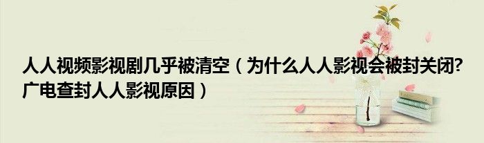 大家好,今天小悦来为大家解答以上问题。人人视频影视剧几乎被清空,为什么人人影视会被封关闭?广电查封人人影视原因很多人还不知道,现在让我们一起来看看吧!