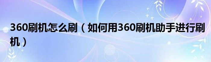 大家好,今天小悦来为大家解答以上问题。360刷机怎么刷,如何用360刷机助手进行刷机很多人还不知道,现在让我们一起来看看吧!