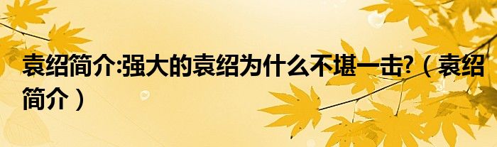 袁绍简介:强大的袁绍为什么不堪一击?(袁绍简介)