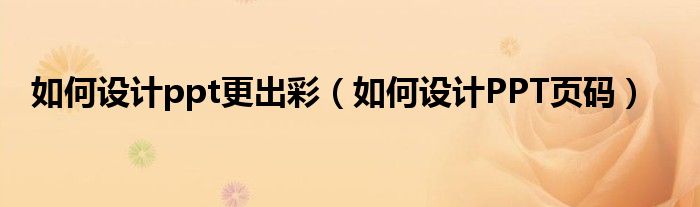 大家好,今天小悦来为大家解答以上问题。如何设计ppt更出彩,如何设计PPT页码很多人还不知道,现在让我们一起来看看吧!