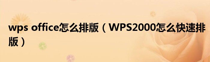 大家好,今天小悦来为大家解答以上问题。wps office怎么排版,WPS2000怎么快速排版很多人还不知道,现在让我们一起来看看吧!