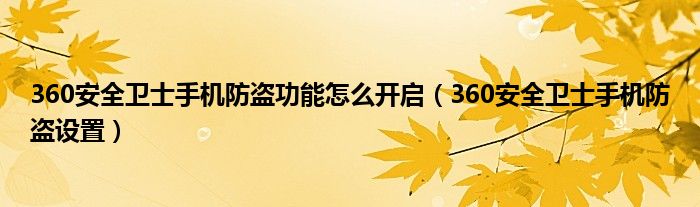大家好,今天小悦来为大家解答以上问题。360安全卫士手机防盗功能怎么开启,360安全卫士手机防盗设置很多人还不知道,现在让我们一起来看看吧!