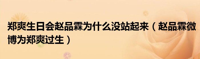 大家好,小晋来为大家解答以下问题,关于郑爽生日会赵品霖为什么没站起来,赵品霖微博为郑爽过生很多人还不知道,今天让我们一起来看看吧!