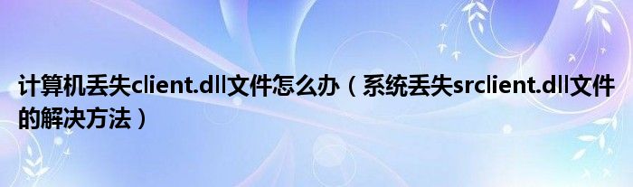 大家好,今天小悦来为大家解答以上问题。计算机丢失client.dll文件怎么办,系统丢失srclient.dll文件的解决方法很多人还不知道,现在让我们一起来看看吧!