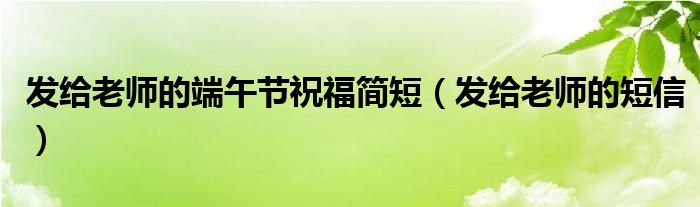 大家好,雨雨来为大家解答以上问题,发给老师的端午节祝福简短,发给老师的短信很多人还不知道,现在让我们一起来看看吧!
