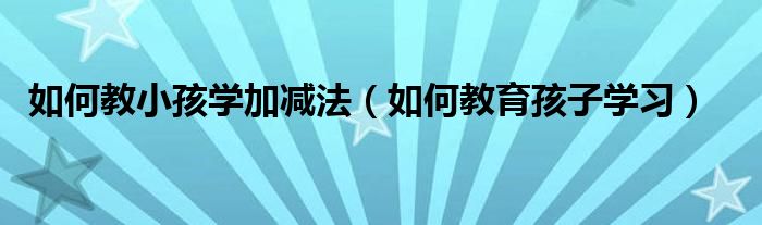 关于如何教小孩学加减法,如何教育孩子学习这个很多人还不知道,今天菲菲来为大家解答以上的问题,现在让我们一起来看看吧!