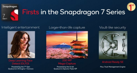 高通的Snapdragon8Gen1+可能是Android世界中新的默认旗舰芯片组,但我们还为Snapdragon7Gen1提供了一个新的中端选项。新的4nm平台为SD7系列带来了多个第一,包括高通的专用AI引擎,高达200MP的图像捕获和适用于电子货币解决方案的AndroidReadySE。