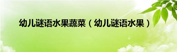 关于幼儿谜语水果蔬菜,幼儿谜语水果这个很多人还不知道,今天菲菲来为大家解答以上的问题,现在让我们一起来看看吧!