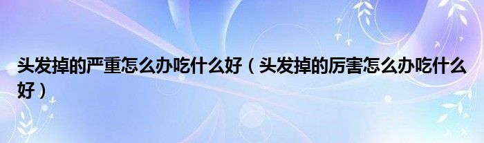 关于头发掉的严重怎么办吃什么好,头发掉的厉害怎么办吃什么好这个很多人还不知道,今天菲菲来为大家解答以上的问题,现在让我们一起来看看吧!