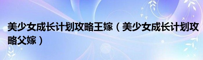 关于美少女成长计划攻略王嫁,美少女成长计划攻略父嫁这个很多人还不知道,今天菲菲来为大家解答以上的问题,现在让我们一起来看看吧!