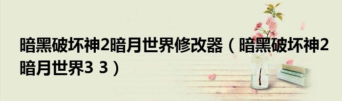 关于暗黑破坏神2暗月世界修改器,暗黑破坏神2暗月世界3 3这个很多人还不知道,今天菲菲来为大家解答以上的问题,现在让我们一起来看看吧!