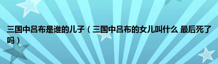 关于三国中吕布是谁的儿子,三国中吕布的女儿叫什么 最后死了吗这个很多人还不知道,今天菲菲来为大家解答以上的问题,现在让我们一起来看看吧!