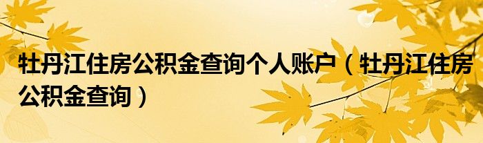 牡丹江住房公积金查询个人账户(牡丹江住房公积金查询)