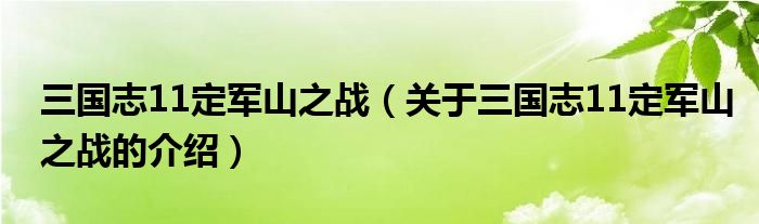 大家好,今天小乐来为大家解答以上的问题。三国志11定军山之战,关于三国志11定军山之战的介绍很多人还不知道,现在让我们一起来看看吧!