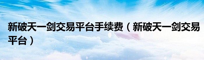 新破天一剑交易平台手续费(新破天一剑交易平台)
