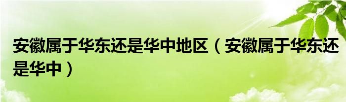 安徽属于华东还是华中地区(安徽属于华东还是华中)