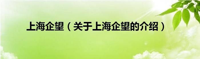 上海企望(关于上海企望的介绍)