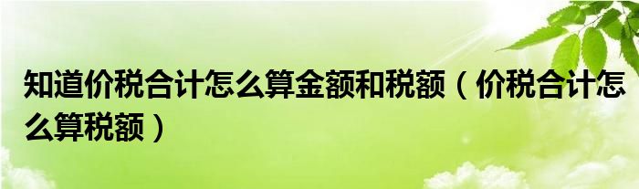 关于知道价税合计怎么算金额和税额,价税合计怎么算税额这个很多人还不知道,今天菲菲来为大家解答以上的问题,现在让我们一起来看看吧!