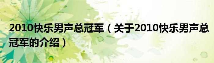 大家好,今天小乐来为大家解答以上的问题。2010快乐男声总冠军,关于2010快乐男声总冠军的介绍很多人还不知道,现在让我们一起来看看吧!